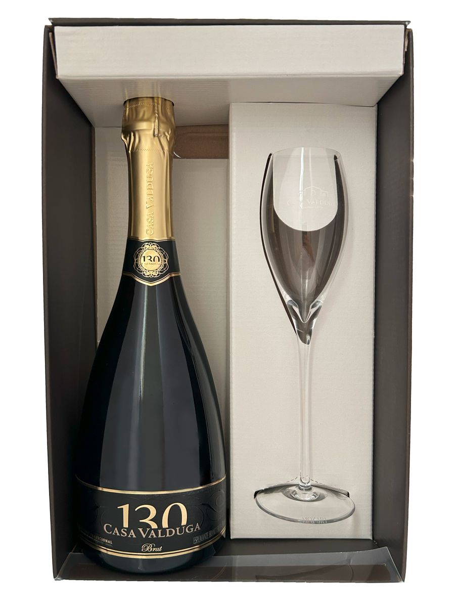 Kit Espumante 130 + Taca: Elaborado com uvas Chardonnay e Pinot Noir de safras especiais, através do método champenoise, permanece em autólise de leveduras por 36 meses. Encantador, possui coloração dourada e fascinante perlage. Revela um bouquet sofisticado e intenso de frutas maduras como abacaxi e pera, perfeitamente aliado à delicadas notas de frutos secos e tostados, resultantes do longo processo de maturação. A complexidade proporcionada pelo harmônico assemblage caracteriza o paladar deste espumante, que apresenta excelente cremosidade e volume amplo, finalizando com um longo retrogosto que remete a nuances de frutas secas e pão tostado.